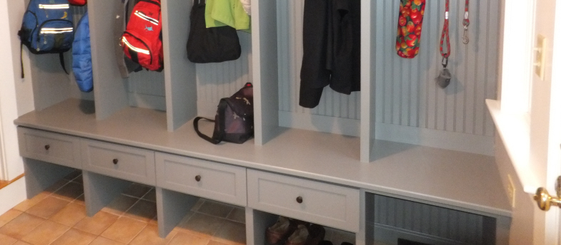 Even a small mudroom offers potential for some key features to keep your family organized. Having an organized space in your entry hall or mudroom for each member of your family to grab essentials gets everyone out the door on time. On your way back in there's a place to put everything away, ready to go for a new day. Every space offers a set of challenges, but keeping the essential design elements in mind will help you optimize the use of your entry space A well designed mudroom is the gateway to an organized home that gives everyone in the family a place to hang their hat, back pack, and coat on the way in the door.